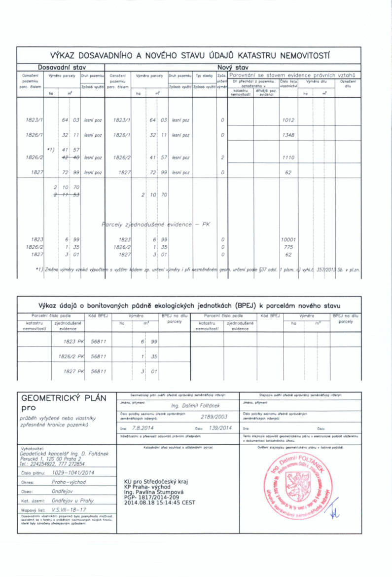 Geometrický plán pro rozdělení pozemku – ukázka vyhotovení